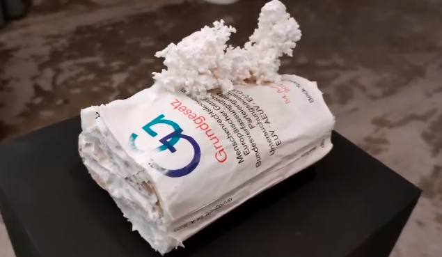 Fungi growing through a Grundgesetz (German Basic Law) book is a powerful image. One that blends environmental urgency, political critique, and existential irony. Whether it’s framed as protest, poetic decay, or fungal futurism, it asks: what grows when the structures we trust begin to rot?